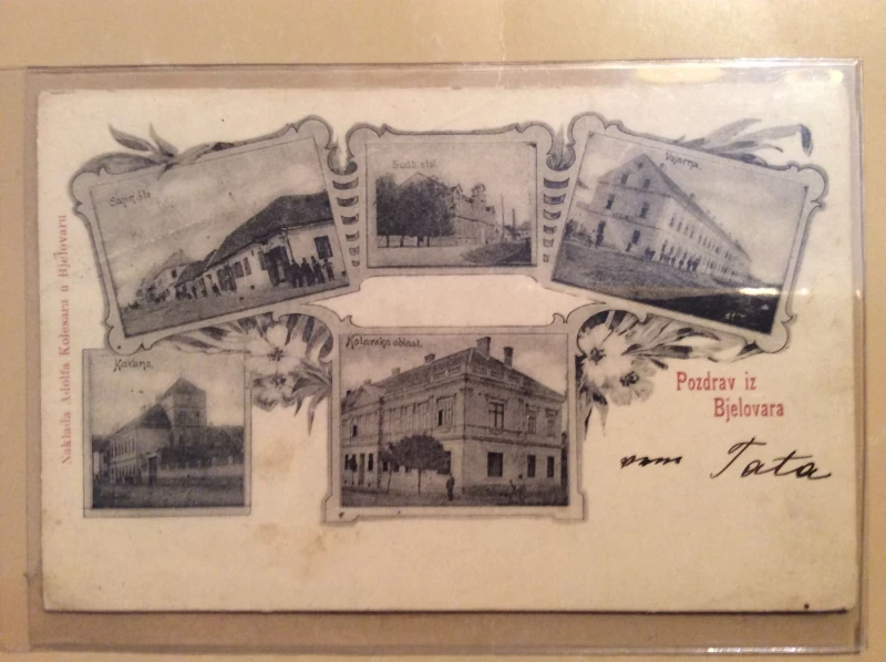 Nepoznati autori: BJELOVAR STARA RAZGLEDNICA SAJMIŠTE VOJARNA KAVANA KOTARSKA OBLAST SUDB. STOL 1900.