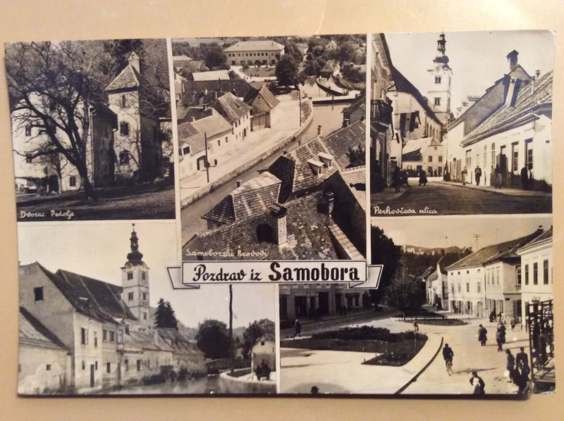 Nepoznati autori: SAMOBOR STARA RAZGLEDNICA DVORAC PODOLJA SAMOBORSKI KROVOVI PERKOVČEVA ULICA