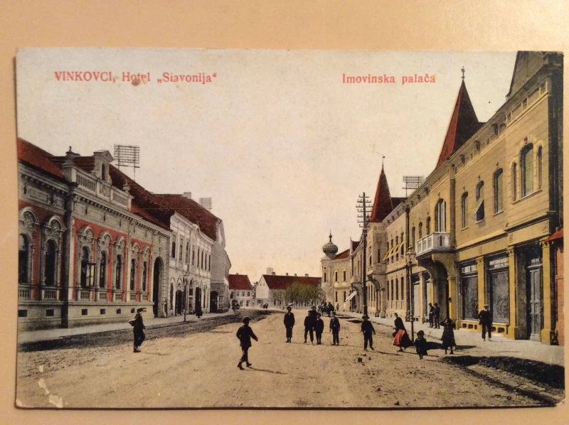 Nepoznati autori: VINKOVCI STARA RAZGLEDNICA HOTEL "SLAVONIJA" IMOVINSKA PALAČA 1926.