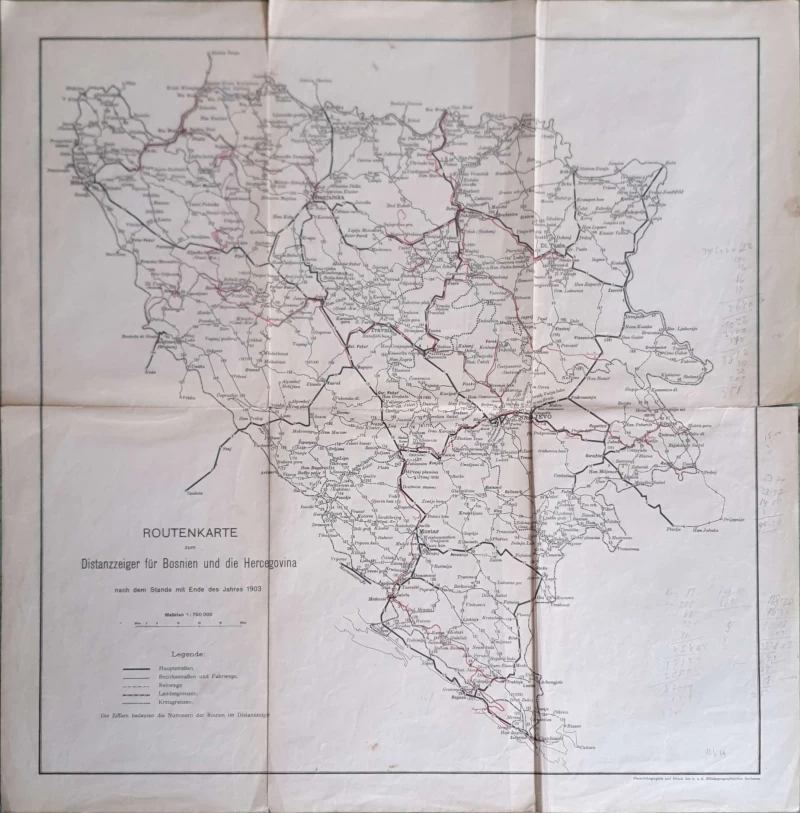 Nepoznati autori: Routenkarte zum Distanzzeiger fur Bosnien und die Hercegovina 1903.